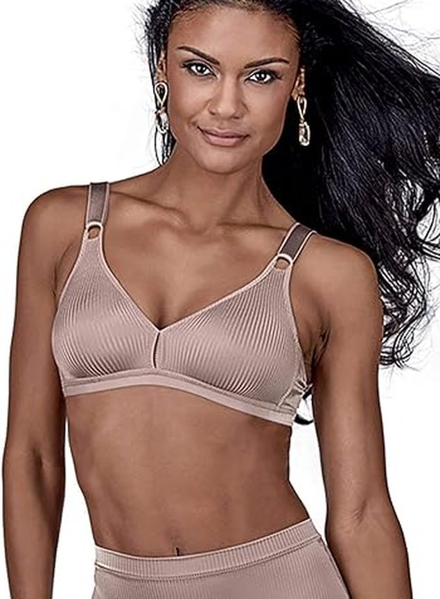 Sutiã Olimpo Bourbon DeMillus, que oferece ótima sustentação para o dia a dia. Sem aro e sem bojo, além de um cós mais longo.