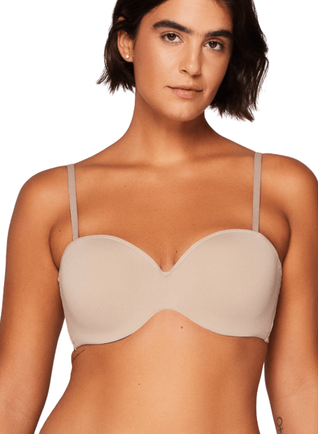 Sutiã tomara que caia com bojo estruturado e espuma interna que aumenta o volume dos seios e os projeta para cima. Possui laterais duplas com efeito emagrecedor, elástico largo e dupla aplicação de silicone para maior segurança. Alças removíveis e reguláveis, disponível nas taças A, B, C, D e DD. Confeccionado em tecido biodegradável, com toque macio, ótima respirabilidade e alta durabilidade. Após o descarte correto, se decompõe em até 3 anos, reduzindo o impacto ambiental.
